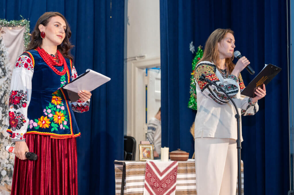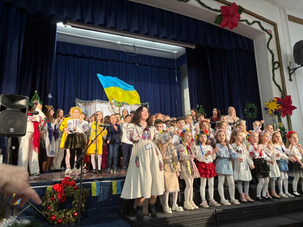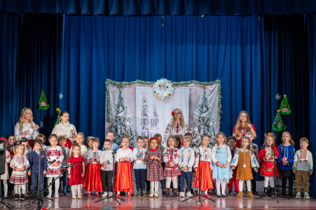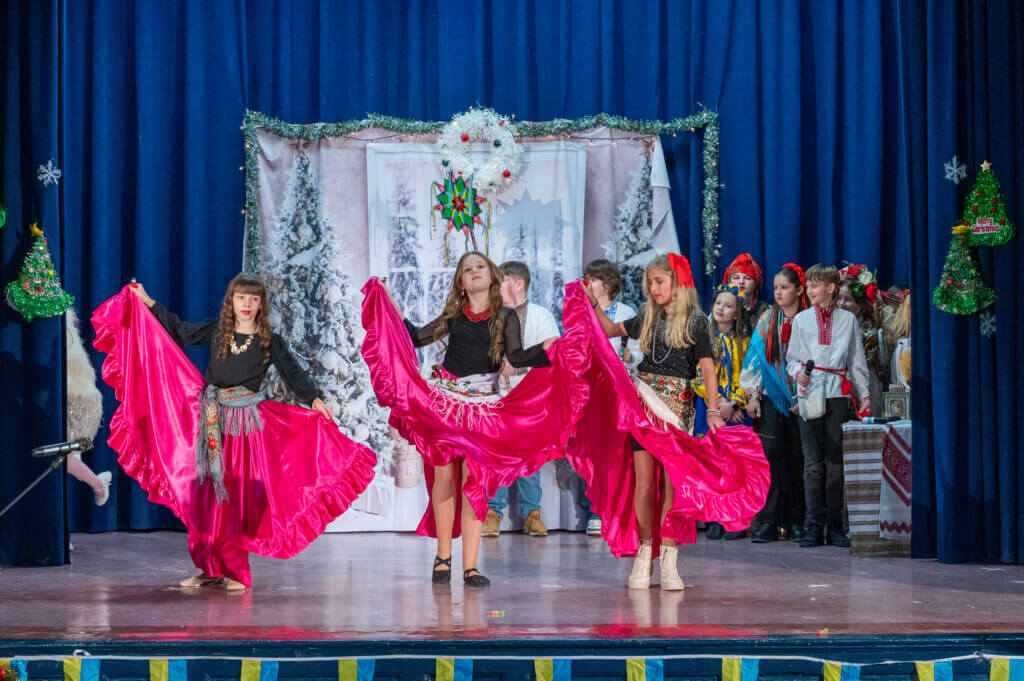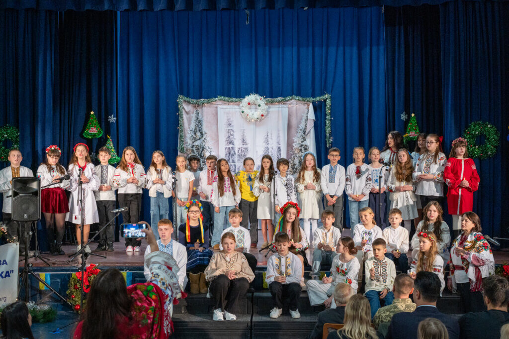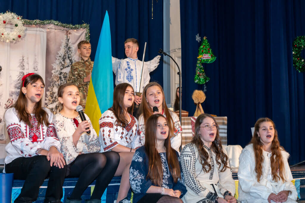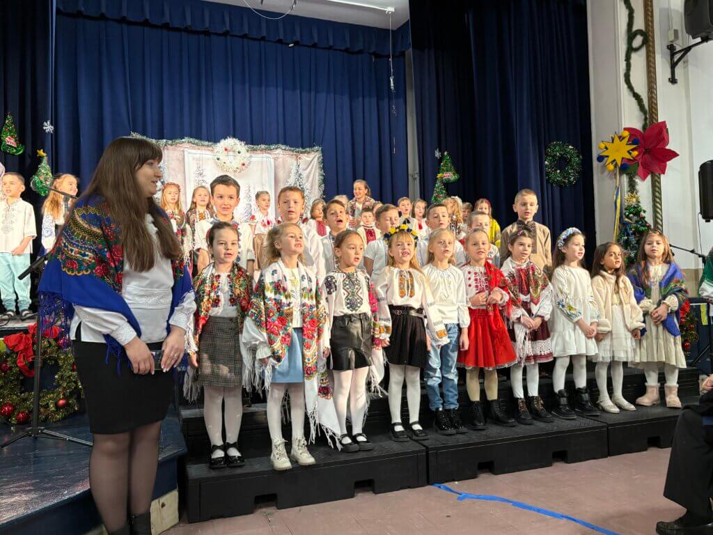 Учні 7-А класу, під керівництвом класного керівника Наталії Лісничук та музичного керівника Юлії Кайтан, розчулили багатьох присутніх до сліз сценою з бомбосховища та колядкою дівчат від їх ровесниці, яка чекає татка з війни.