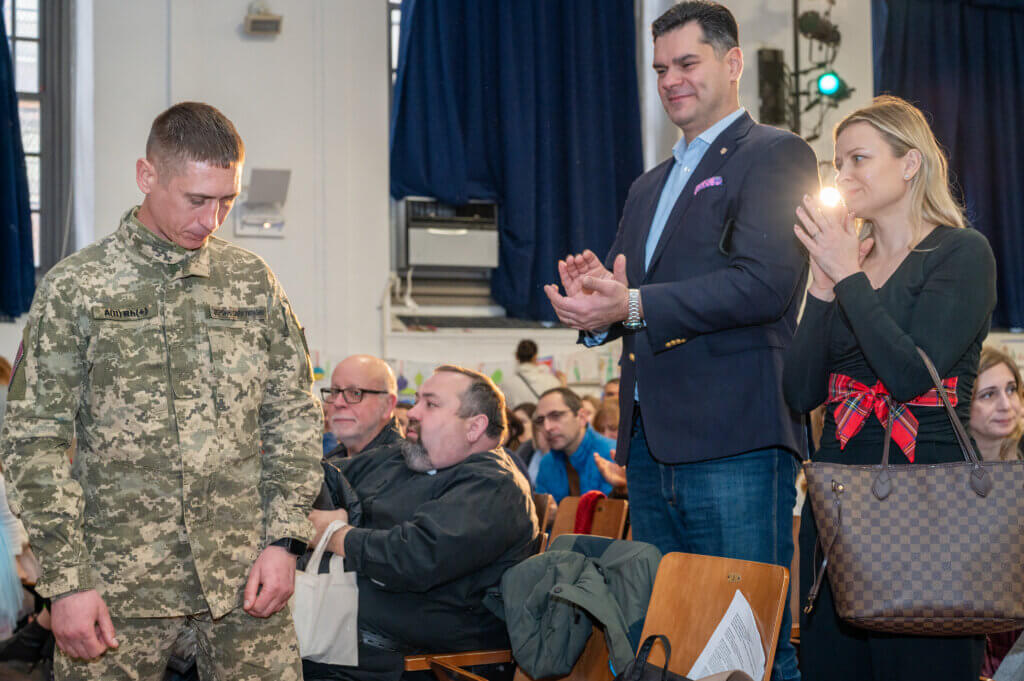 Оплесками стоячи присутні вітали українського воїна Костянтина Смаглія — ветерана Збройних сил України, розвідника-сапера 25-ї окремої повітряно-десантної бригади ДШВ, який перебуває на реабілітації і протезуванні за програмою неприбуткової організації #Kind Deeds.