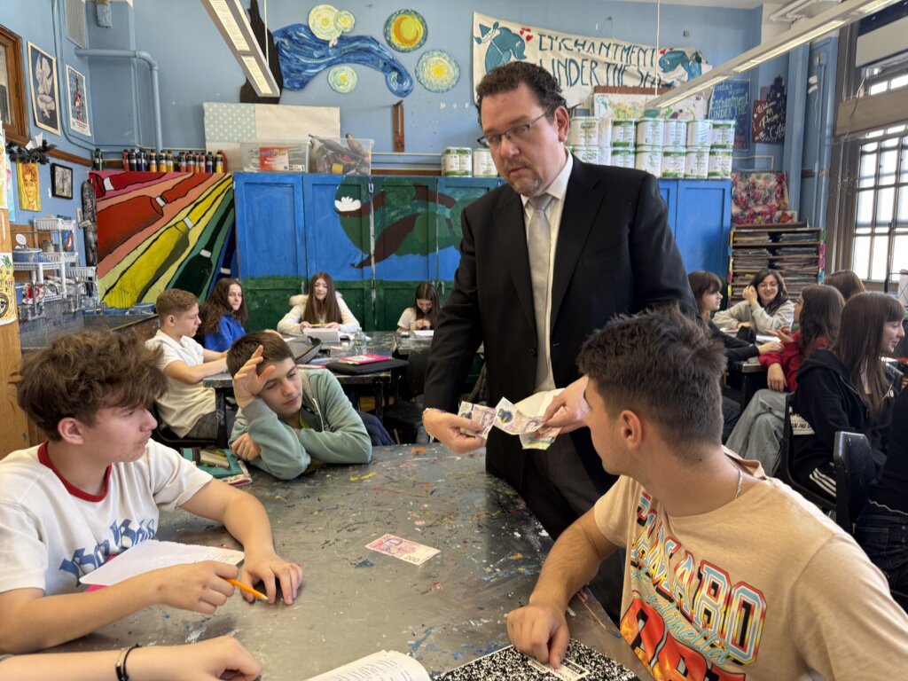 Президент Федеральної Фінансової Кредитної Спілки “Самопоміч” у Нью Йорку п. Анатолій Мурга та його заступниця п. Ґеня Блага завітали минулої суботи, 21 березня, до школи українознавства “Нова хвилька” у Брукліні, НЙ. Учні старших класів з цікавістю слухали про те, як формується кредитна історія, як і коли вони можуть отримати свої кредитні картки, як робити інвестування. Особливе пожвавлення викликала дискусія, коли пан Анатолій роздав учням різні купюри і попросив розповісти, що вони хотіли б у першу чергу купити і чи то є потреба чи забаганка. А тих, хто чітко обчислював відсотки від позичок і як це допомагає банківській установі розвиватись, запросив до праці, коли до своїх математичних здібностей додадуть ще й диплом про фінансову освіту.